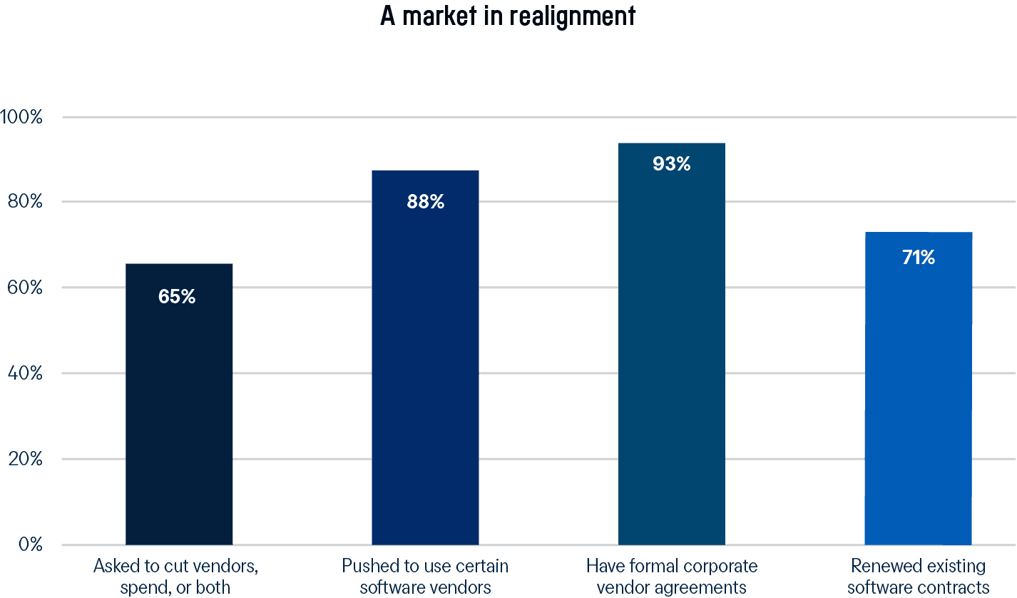Following years of adding new tools to address every workflow, use case, or AI promise, our survey shows that organizations are now prioritizing vendor consolidation, with 65% being told to cut costs or reduce the number of vendors.